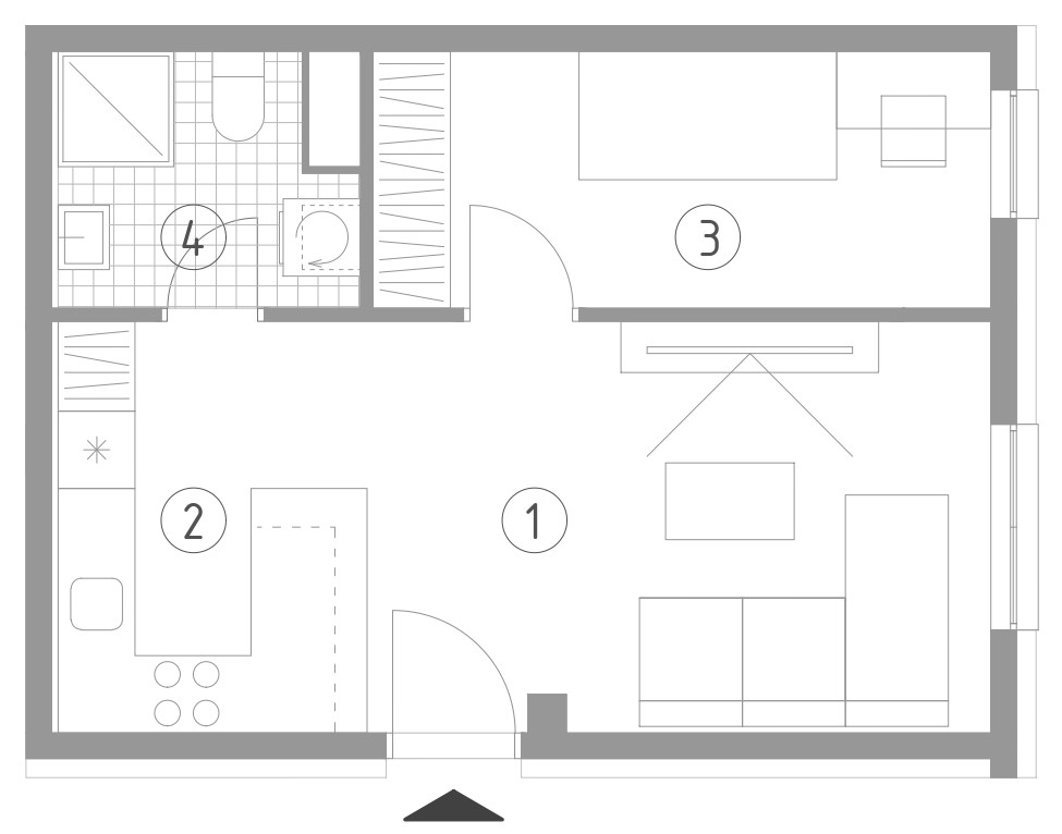 Prostorija Neto površina (m2) Koeficijent Prodajna površina (m2) 1 Dnevni boravak i blagovaonica 15.75 1 15.75 2 Kuhinja 7.88 1 7.88 3 Spavaća soba 9.74 1 9.74 4 Kupaonica 4.33 1 4.33 Ukupno zatvoreni 37.7 37.7 5 Vanjsko parkirno mjesto VPM1 12.87 0,25 3.22 SVEUKUPNO 50.57 40.92 Preuzmite specifikacije stana